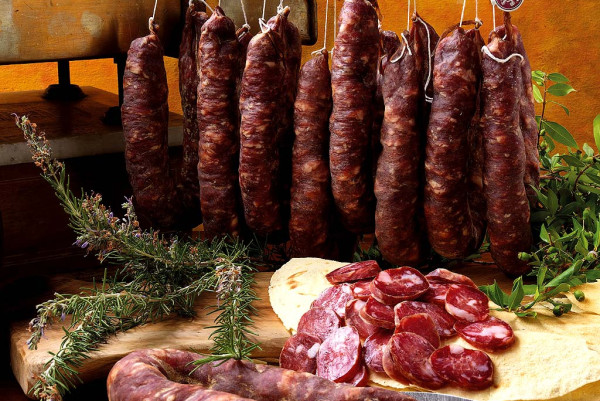 The traditional Sardinian food includes many different salamis and cold cuts. Other than pork salamis, traditional local delicacies include boar, goat and sheep sausages which are produced in a limited number of areas. There is also Sardinian sausage, which used to be home made but nowadays is produced on an industrial level and it is sold fresh, seasoned or smoked. The ingredients utilised to manufacture Sardinian sausage are: pork meat cut into pieces, lard, salt.