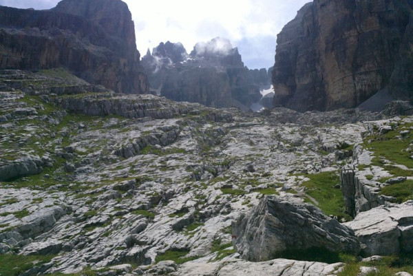 This beautiful trail crosses the biotope of "Marocche", an imposing mass of rocky material created by the phenomenon of glaciation. This territory consists of many stones and debris up to 250 meters high and built up due to landslides and collapses of post-glacial origin. The erosion of the weather has helped to sculpt and shape this environment over thousands of years later. Crossing the Marocche you reach a point where recently footprints of two dinosaurs, a herbi-vore and a carnivore over 6 meters long, have been found.